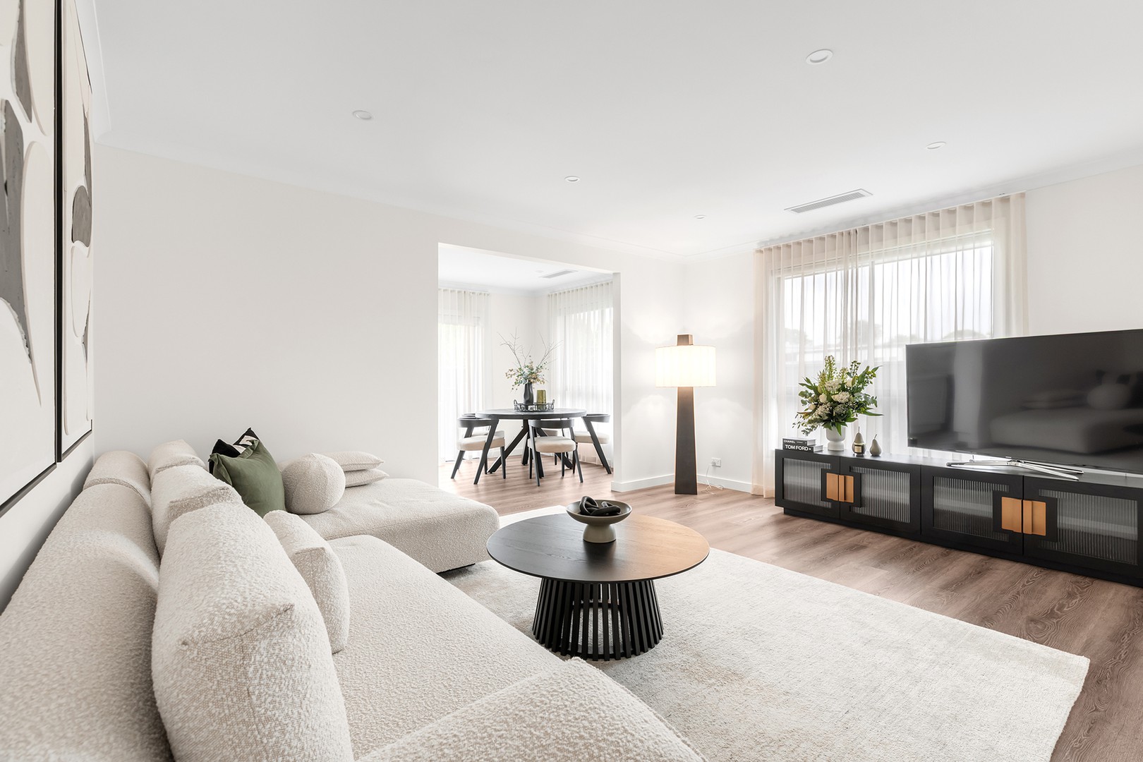 Step inside this beautifully designed single-level residence where contemporary elegance meets effortless living. Showcasing stunning ash floorboards throughout the main living areas, the home immediately exudes warmth, style and sophistication.